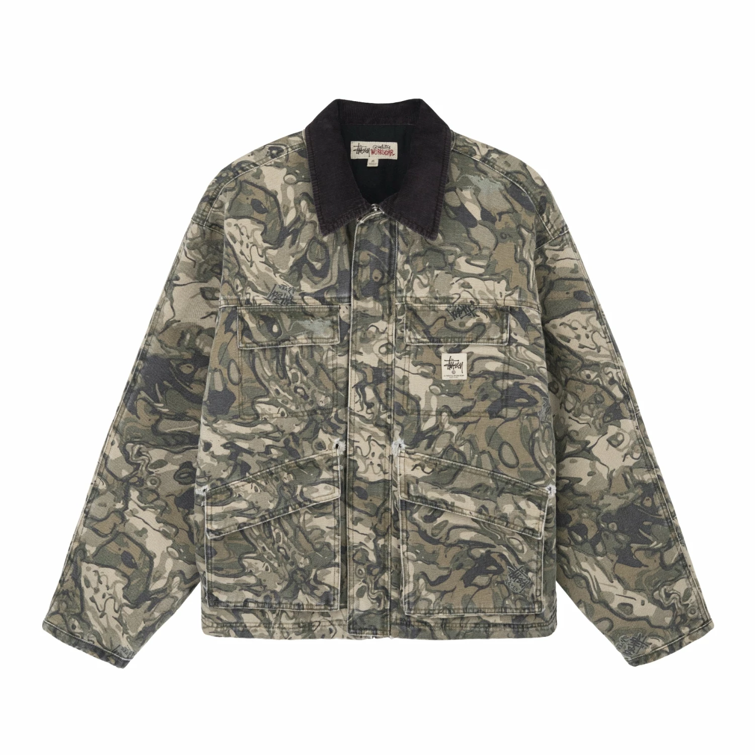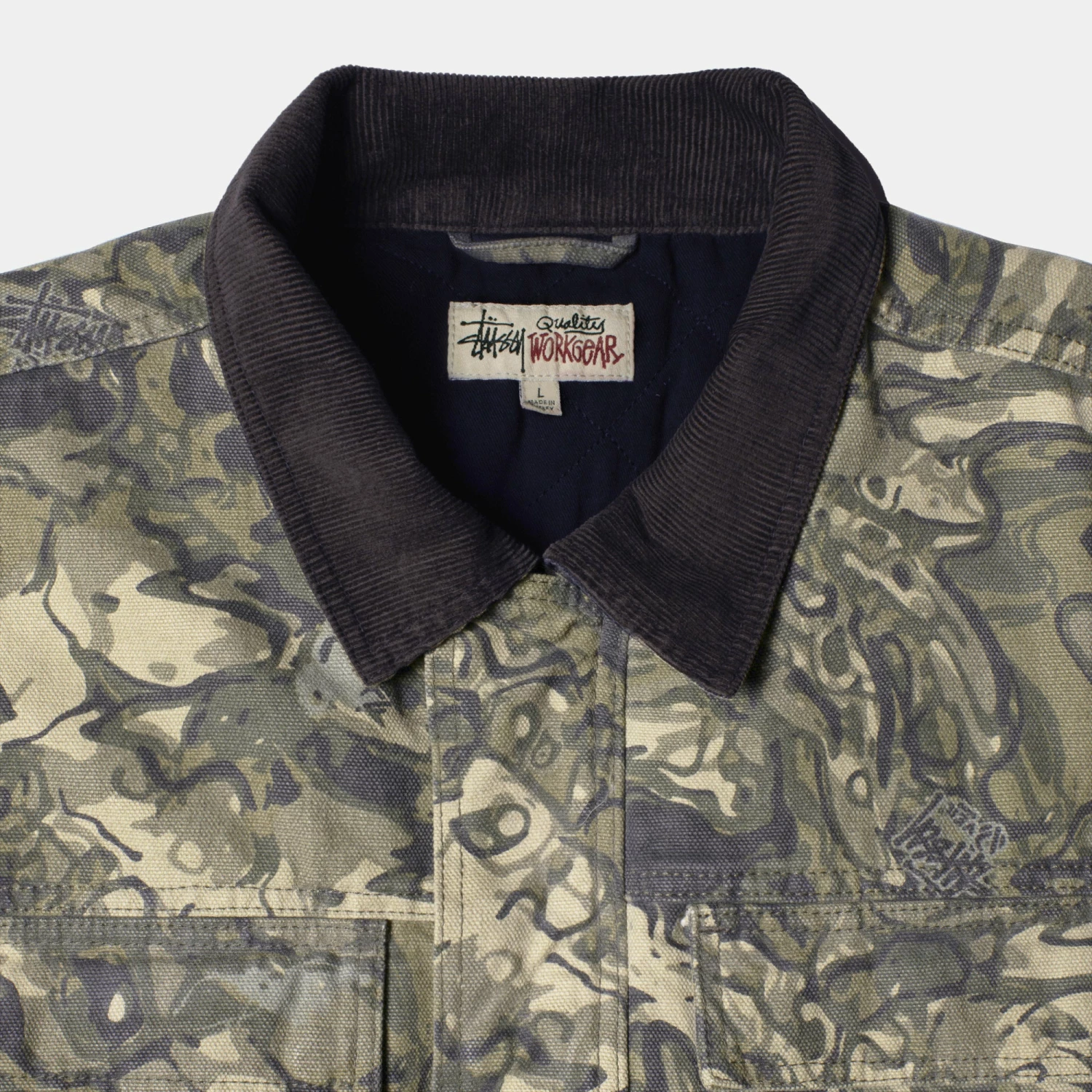 – StΓΌssy Work Gear label on chest