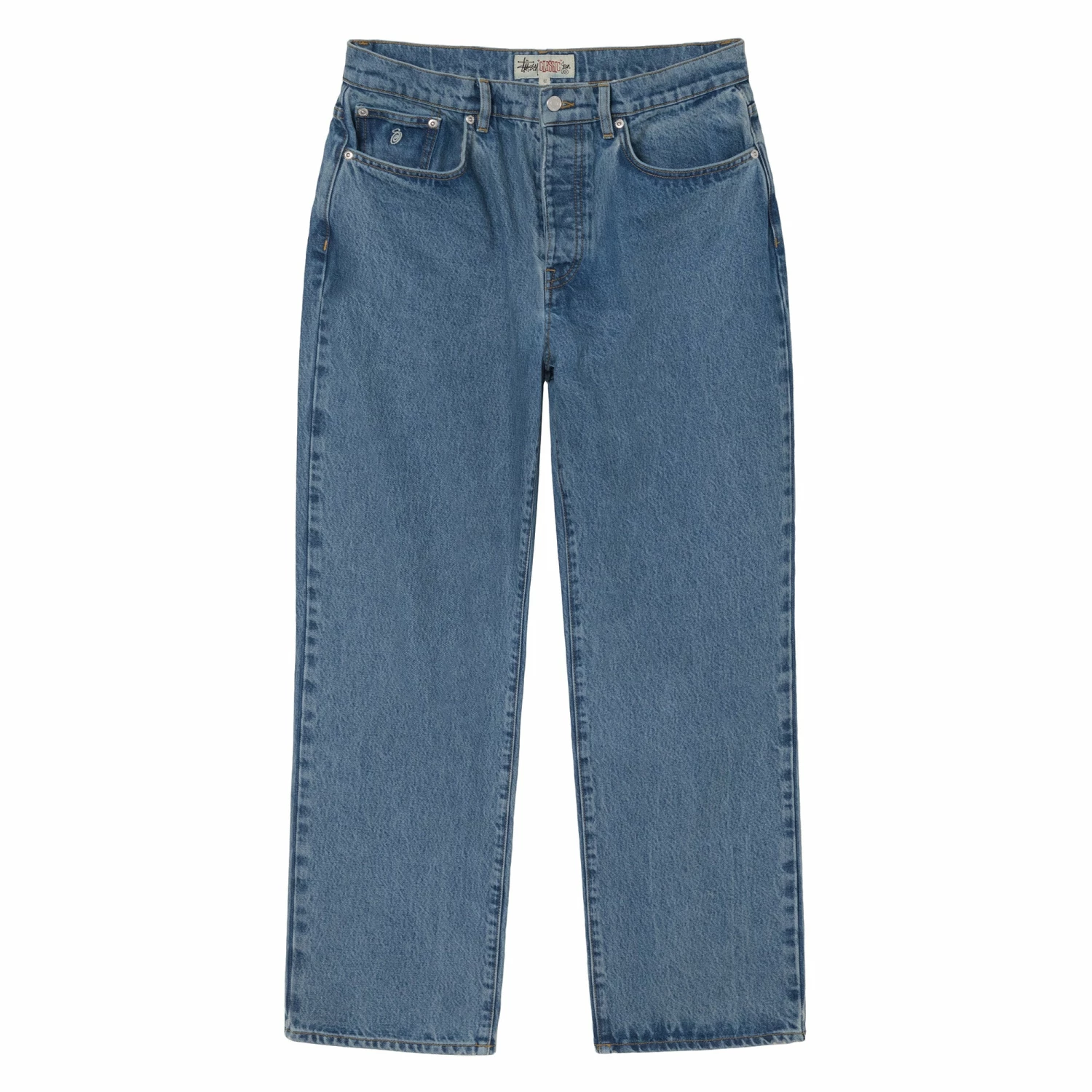 Classic fit washed denim jeans.