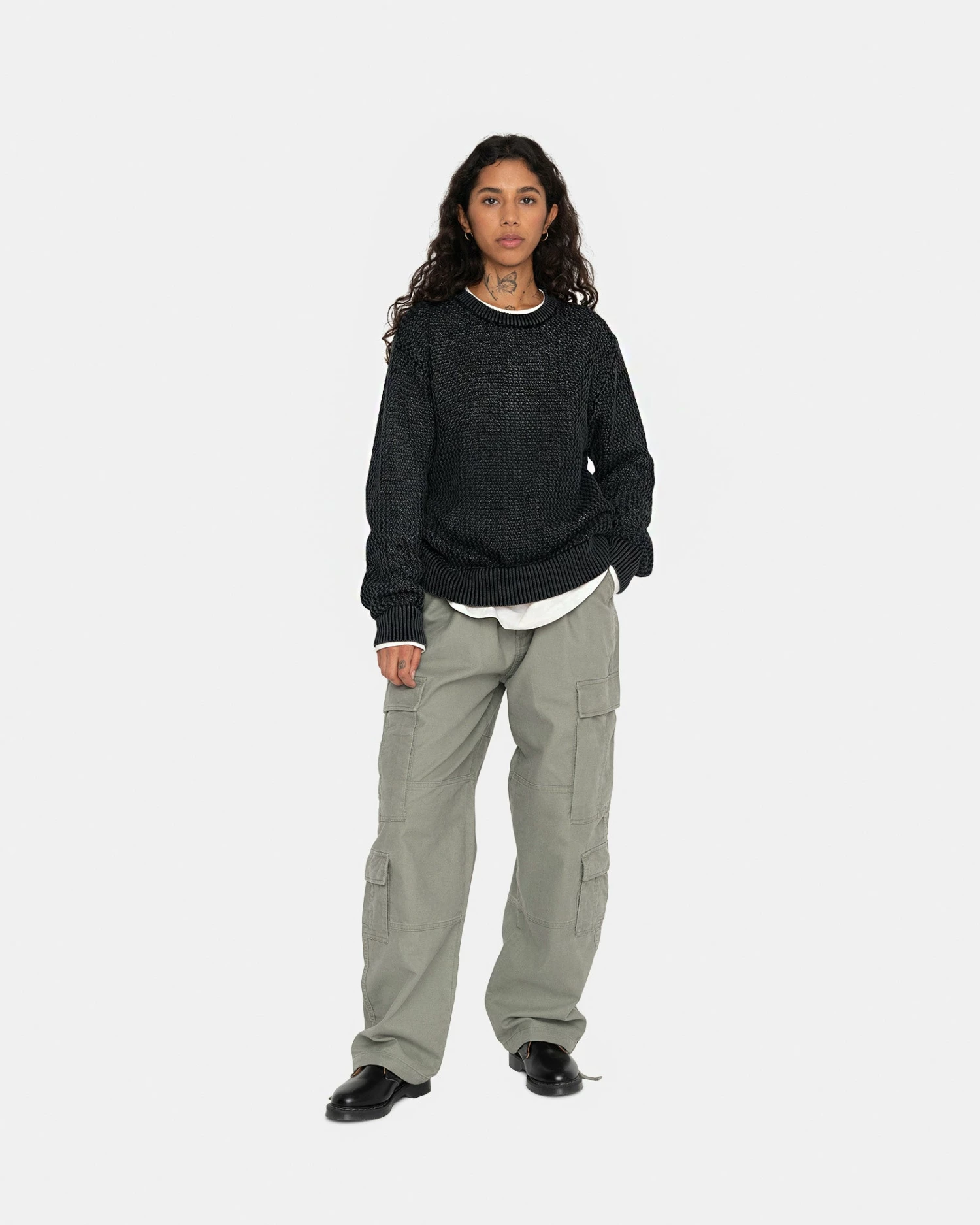 Pigment dyed loose gauge knit sweater.