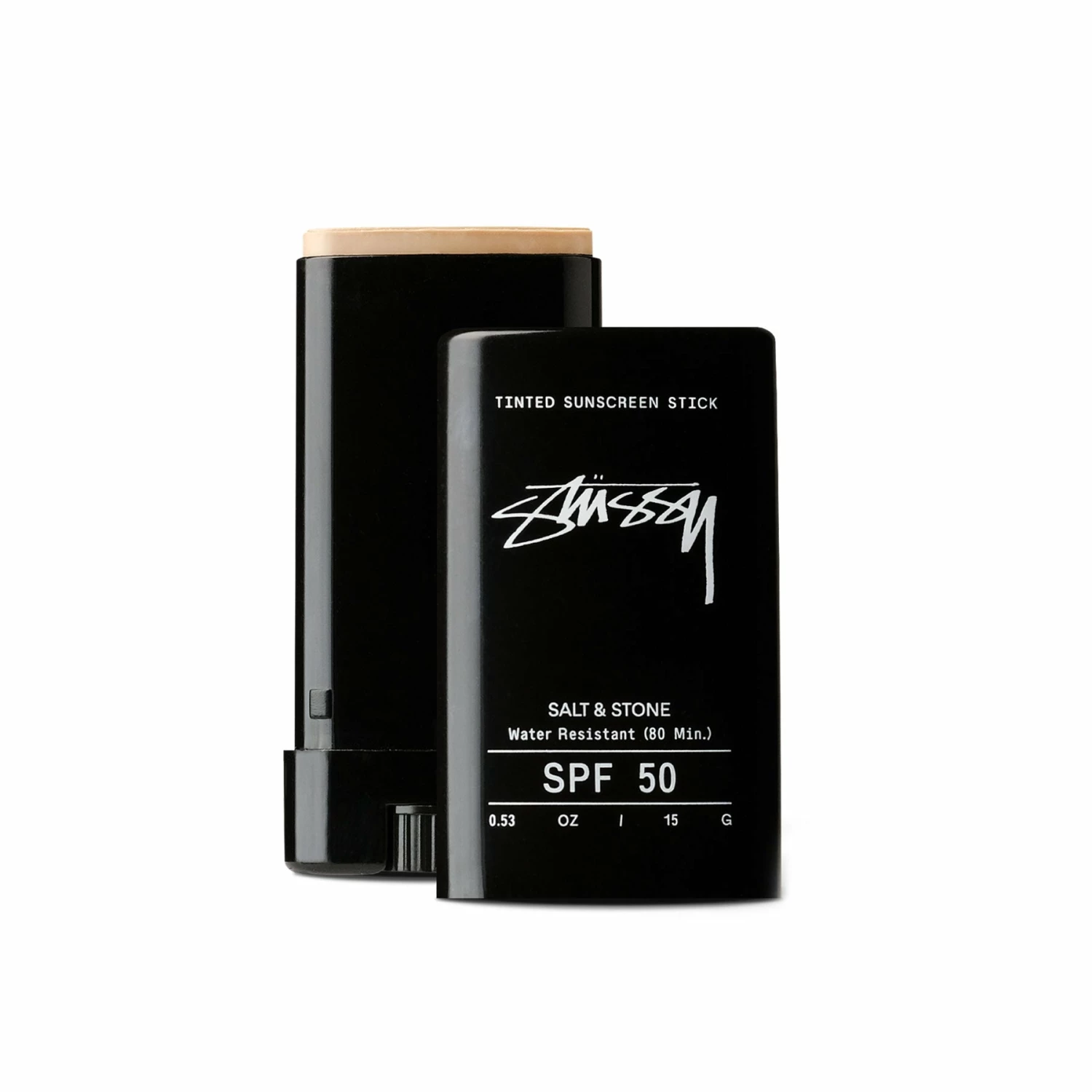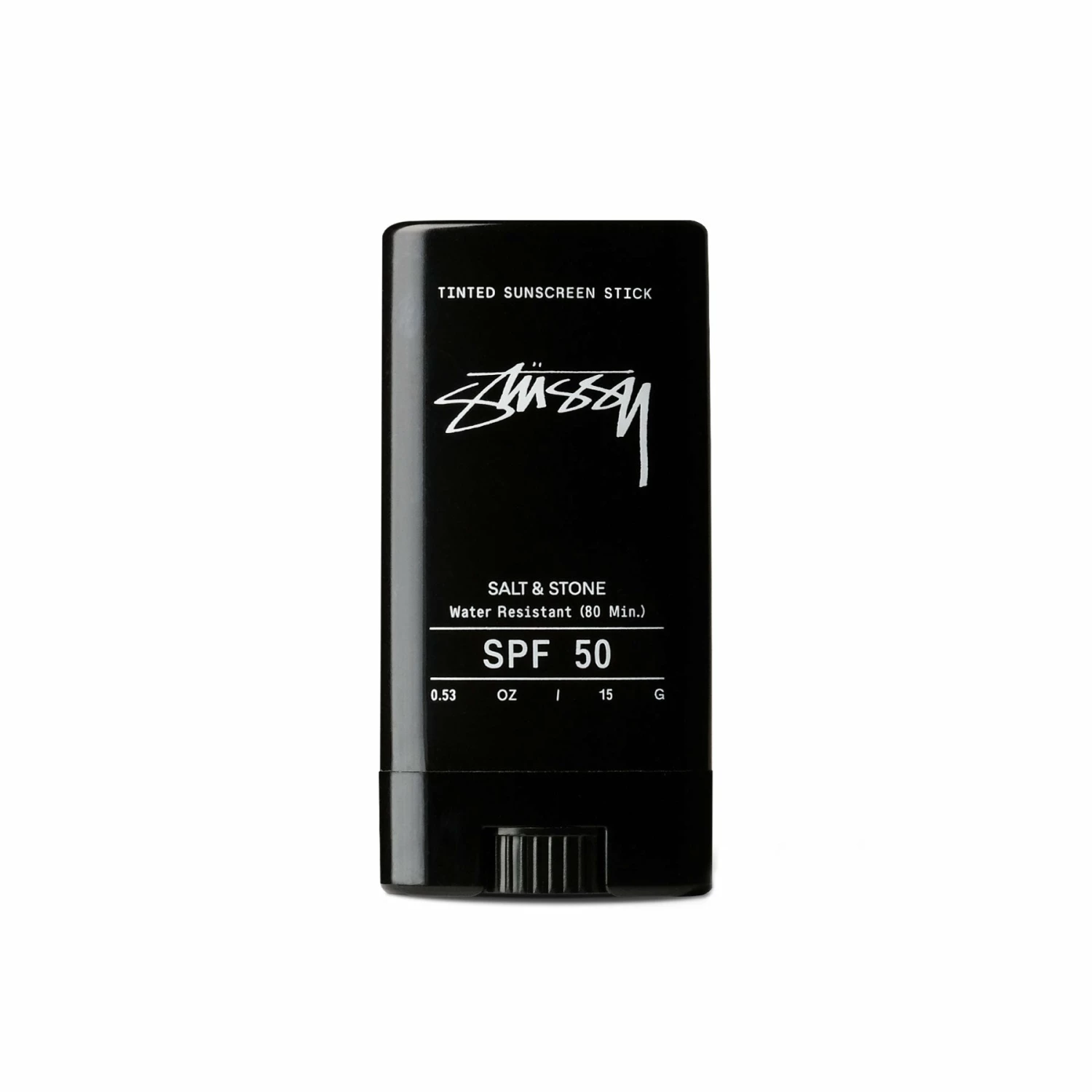 StΓΌssy has collaborated with high-performance botanical skincare brand SALT & STONE on a natural sunscreen face stick. The broad spectrum, water resistant, and reef safe face stick goes on smooth without any white residue. Formulated with a natural tint to blend into all skin tones. Perfect protection for a morning session in the Pacific.